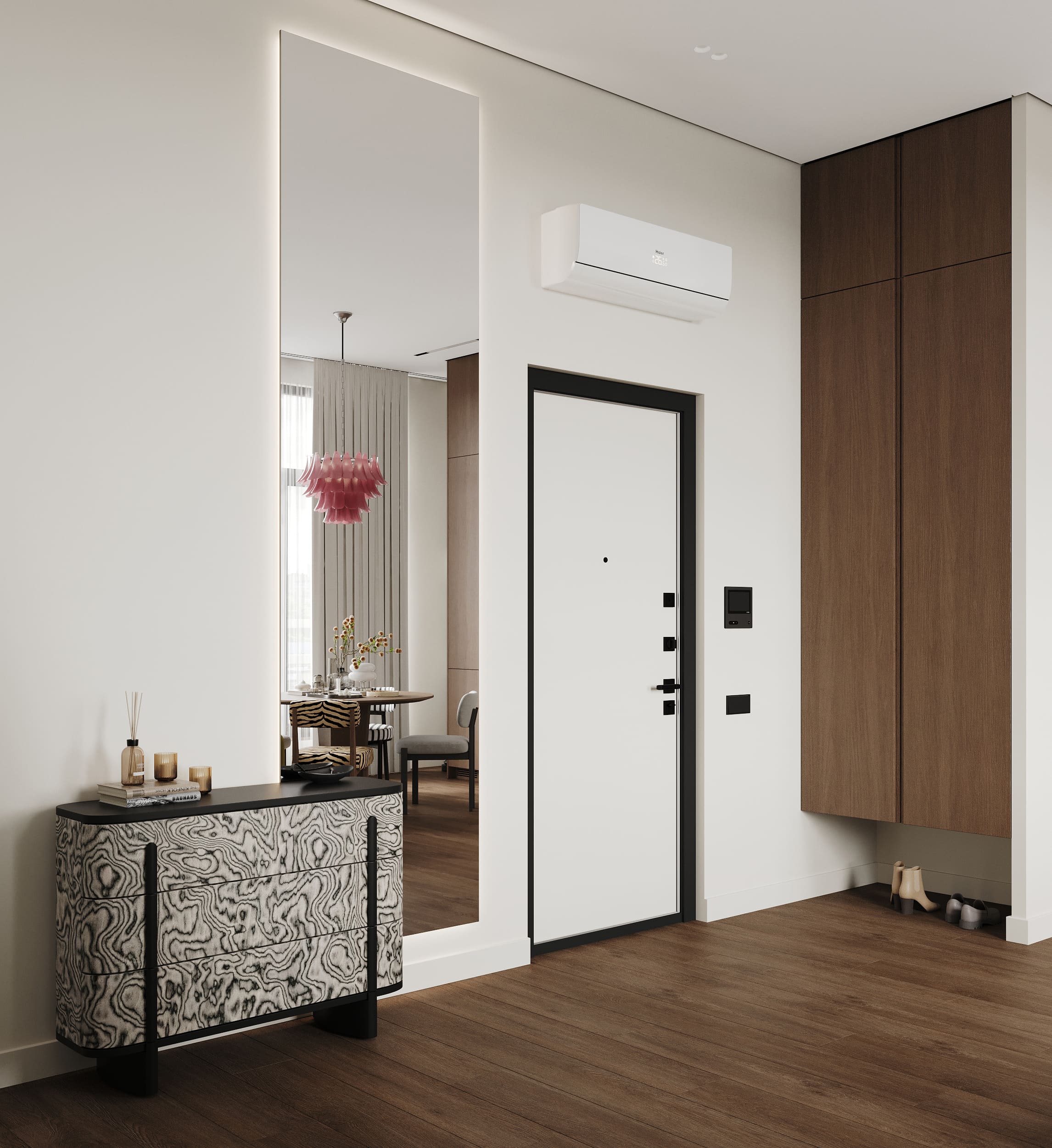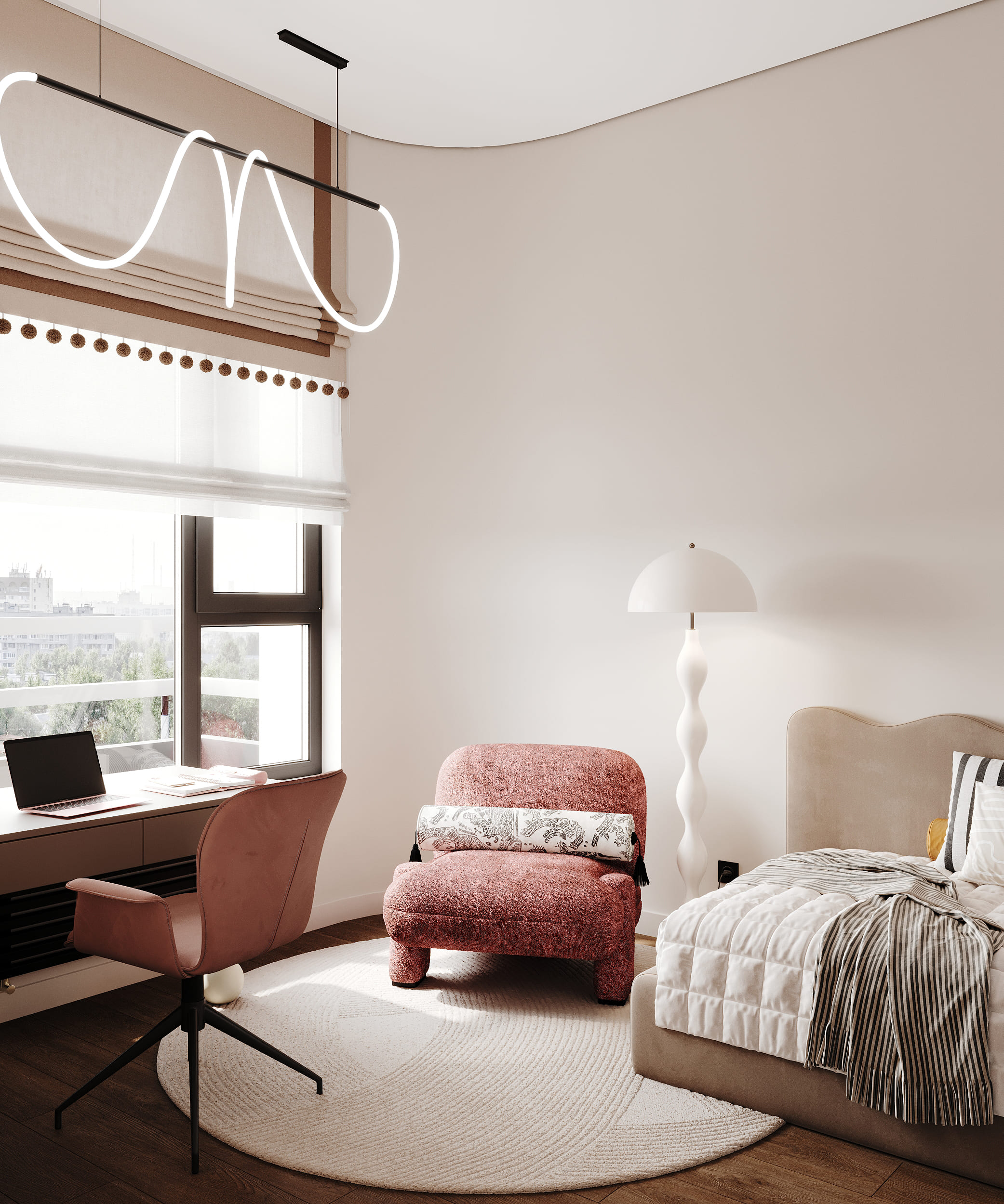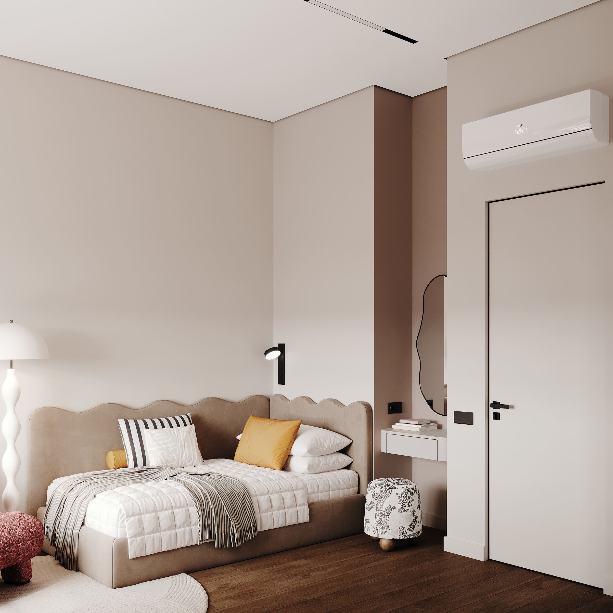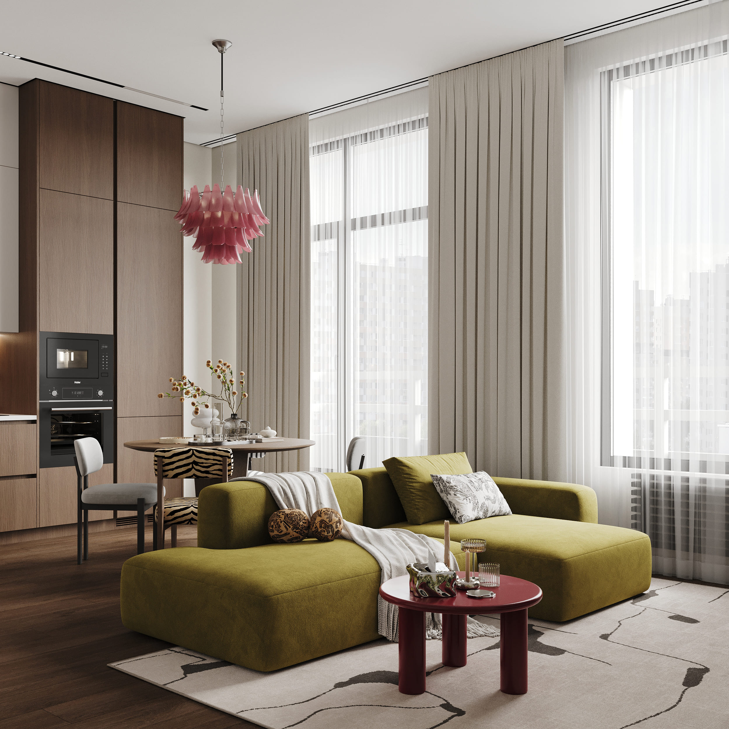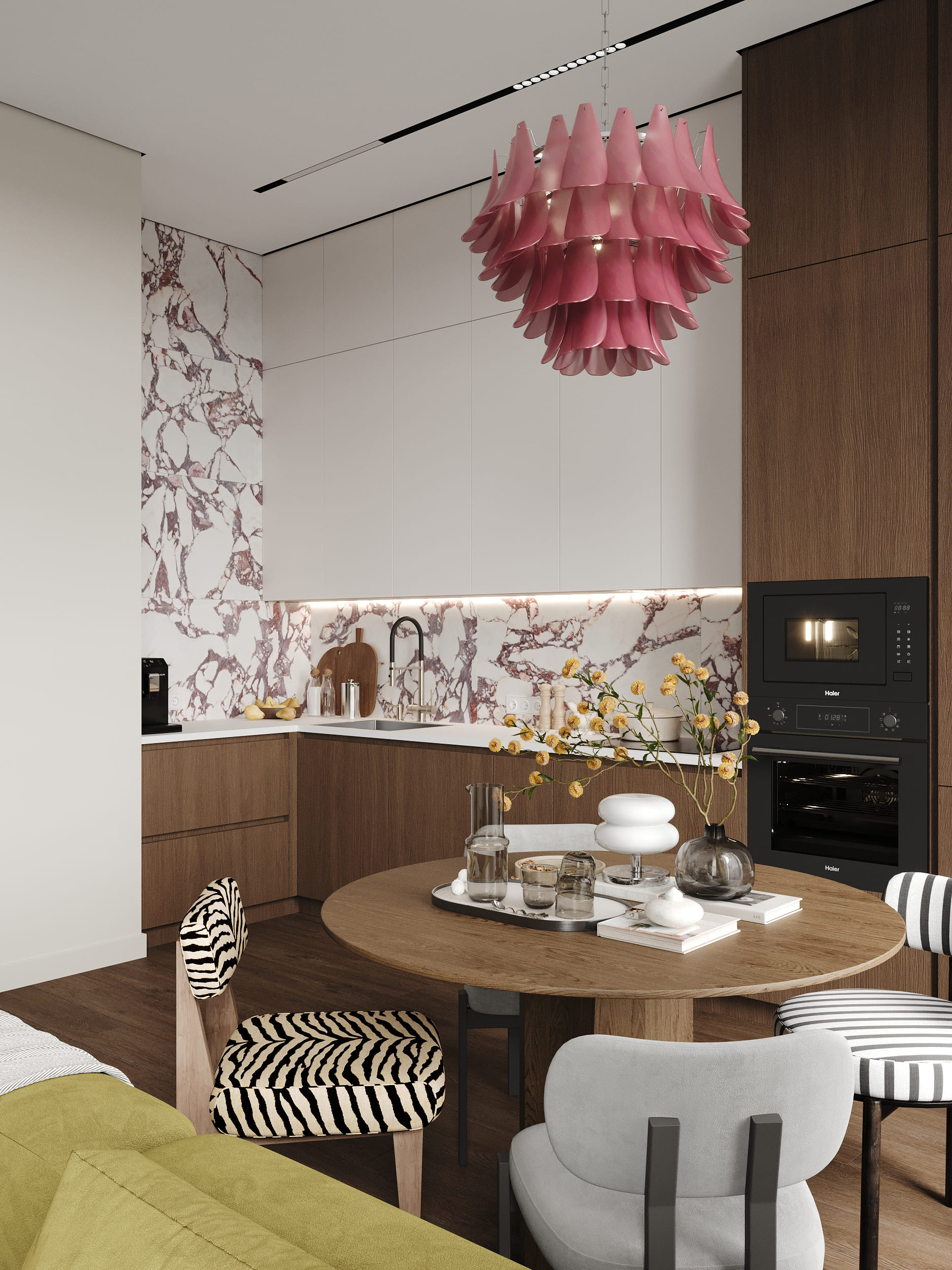 В результате получился интерьер, в котором нейтральная база сочетается с яркими «дофаминовыми» деталями, которые отлично дополняют друг друга.